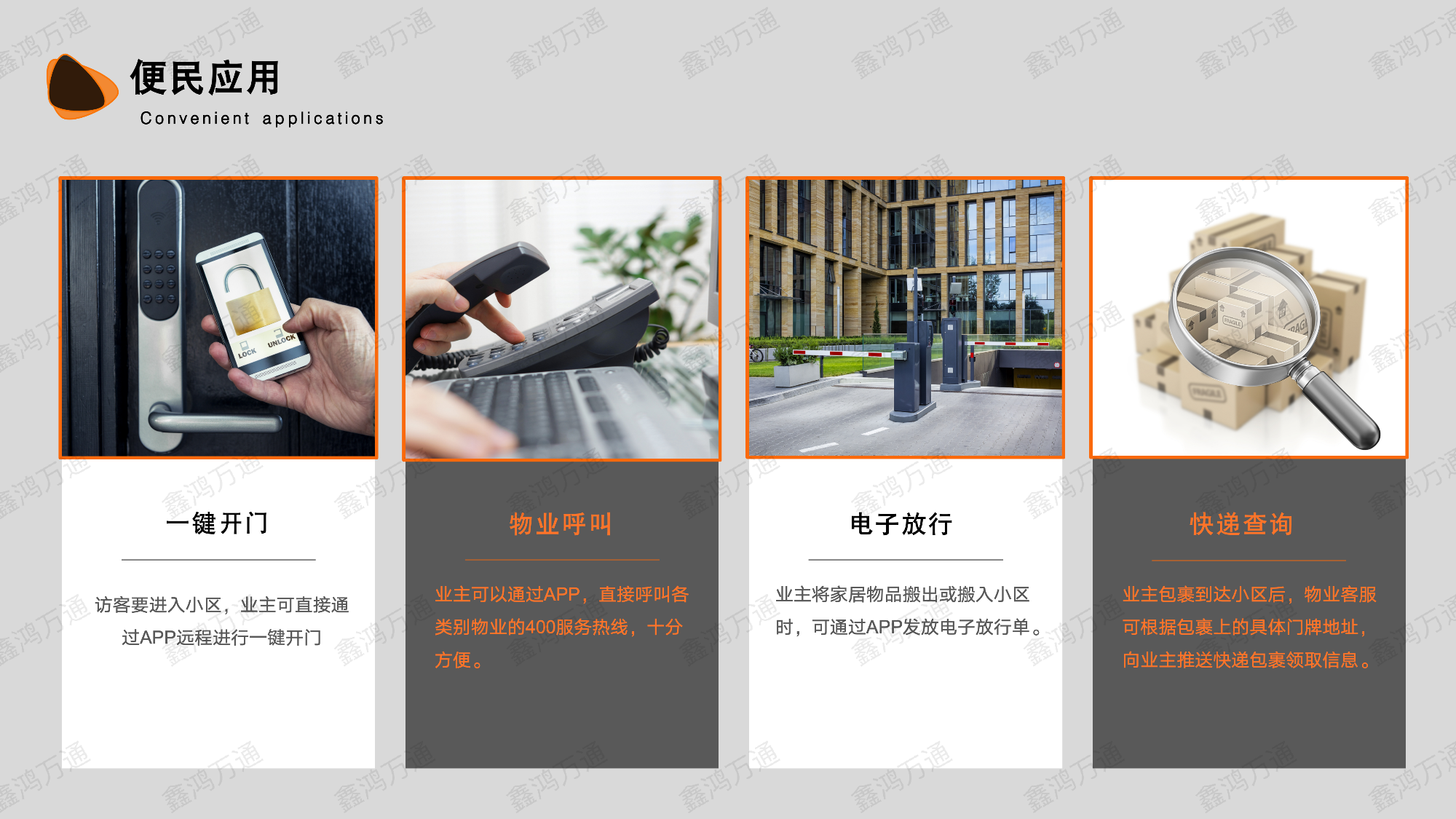 通過(guò)APP實(shí)現(xiàn)住戶水電氣繳費(fèi)、手機(jī)話費(fèi)充值、機(jī)票、火車票訂購(gòu)、本地天氣、萬(wàn)年歷、違章查詢、身份證查詢、房貸計(jì)算器等服務(wù)。